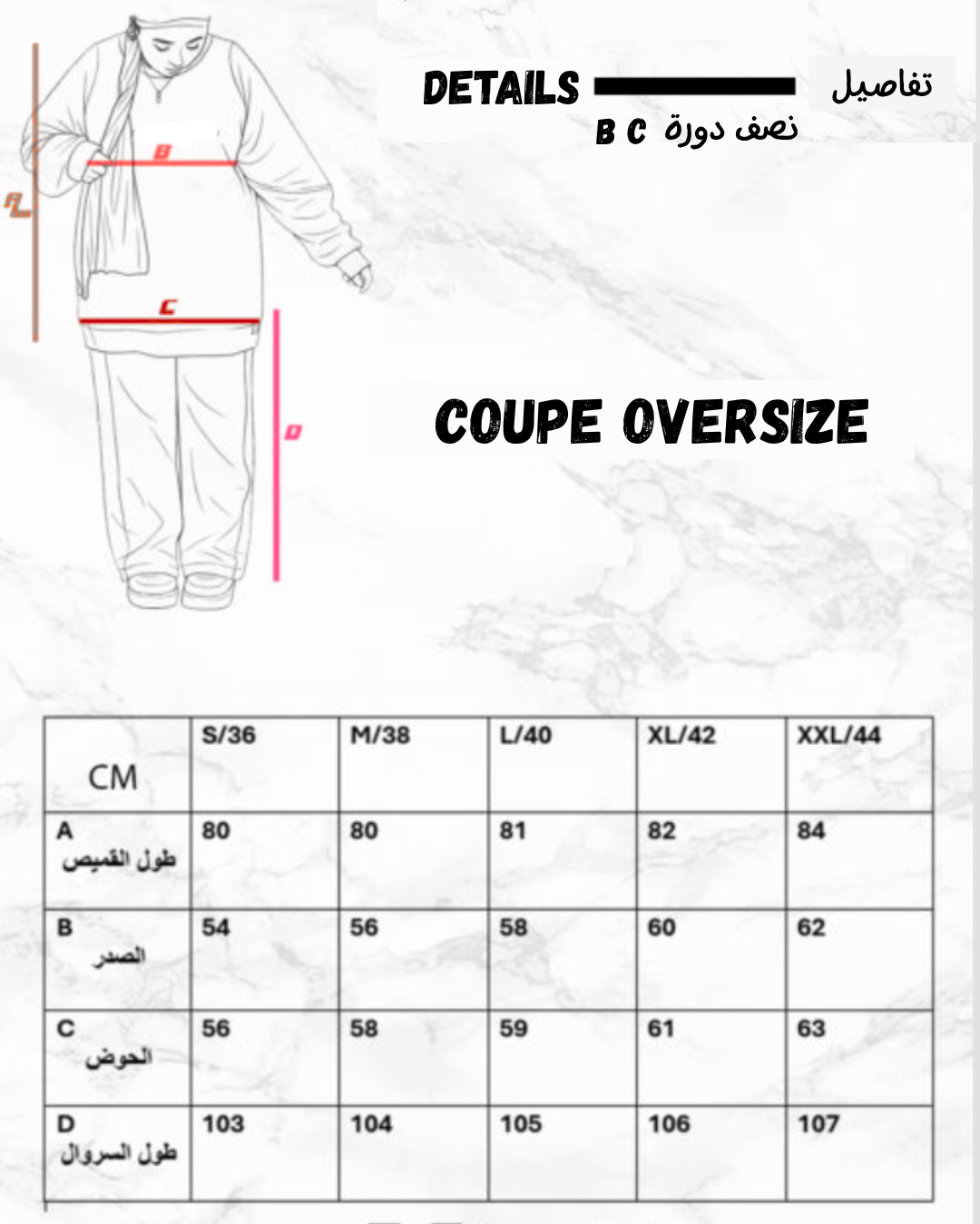 le mannequin porte la taille XL et mesure 1m65