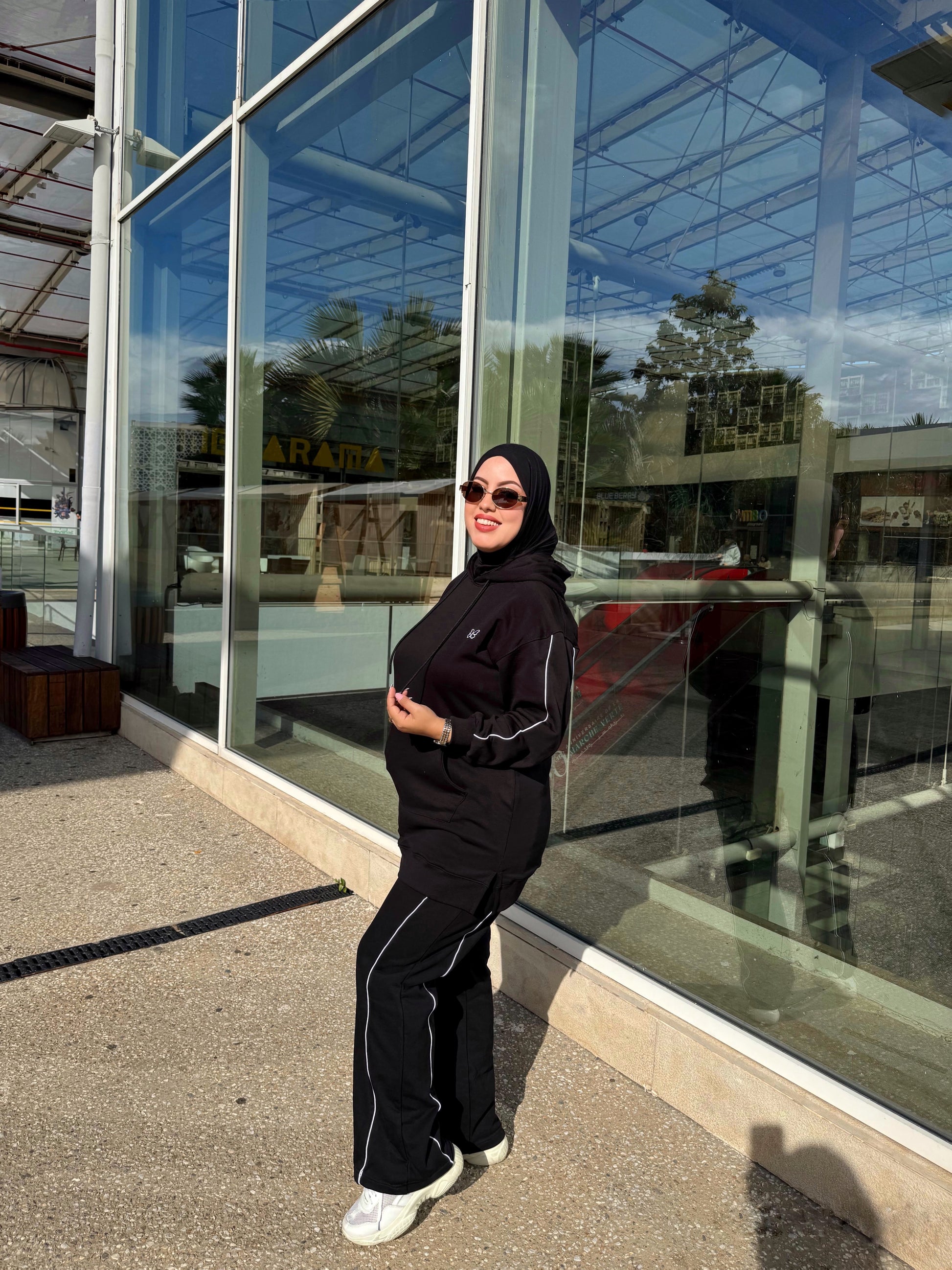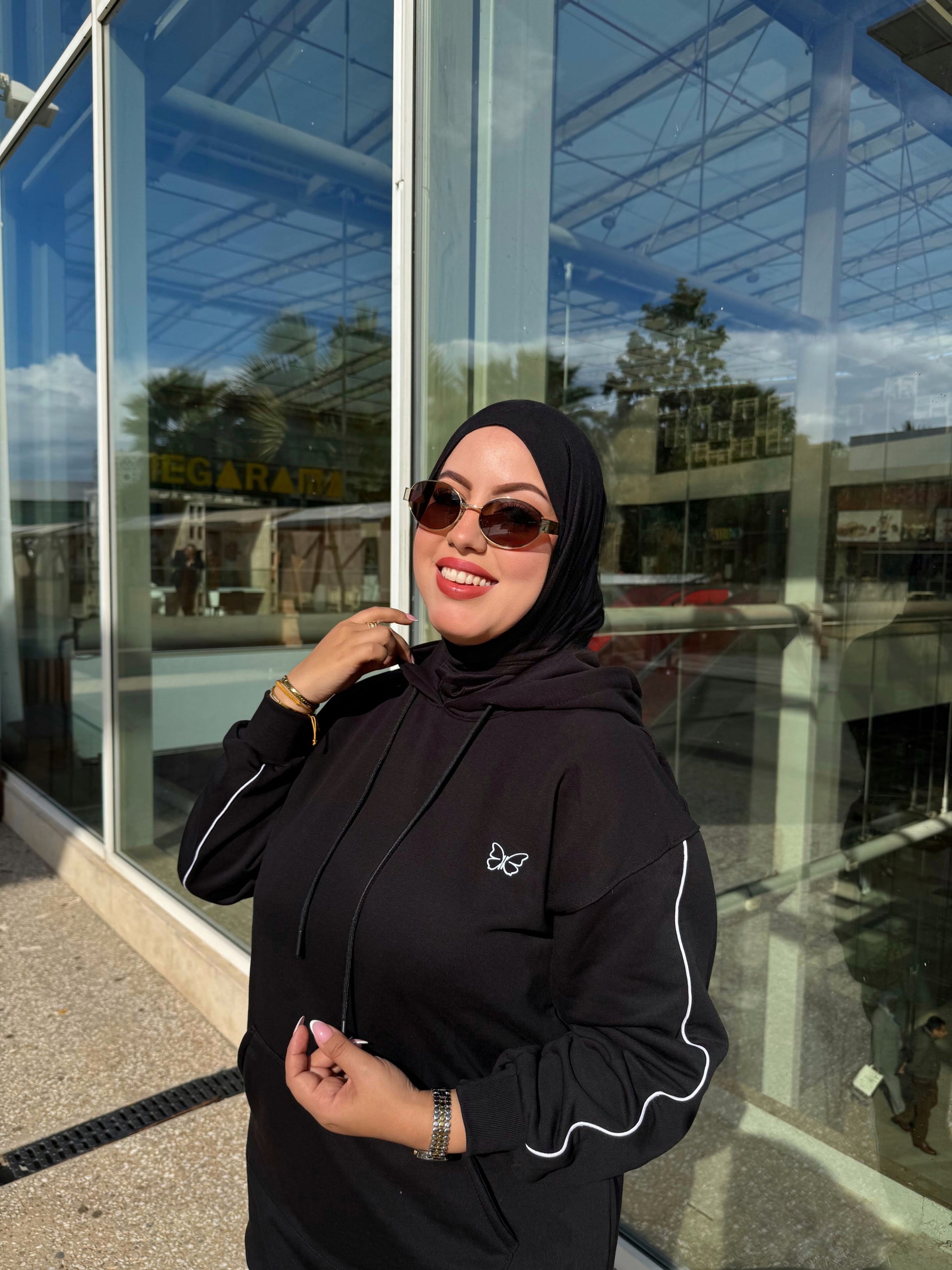 -Un sweat à capuche avec poche, et détails en blanc sur les manches.