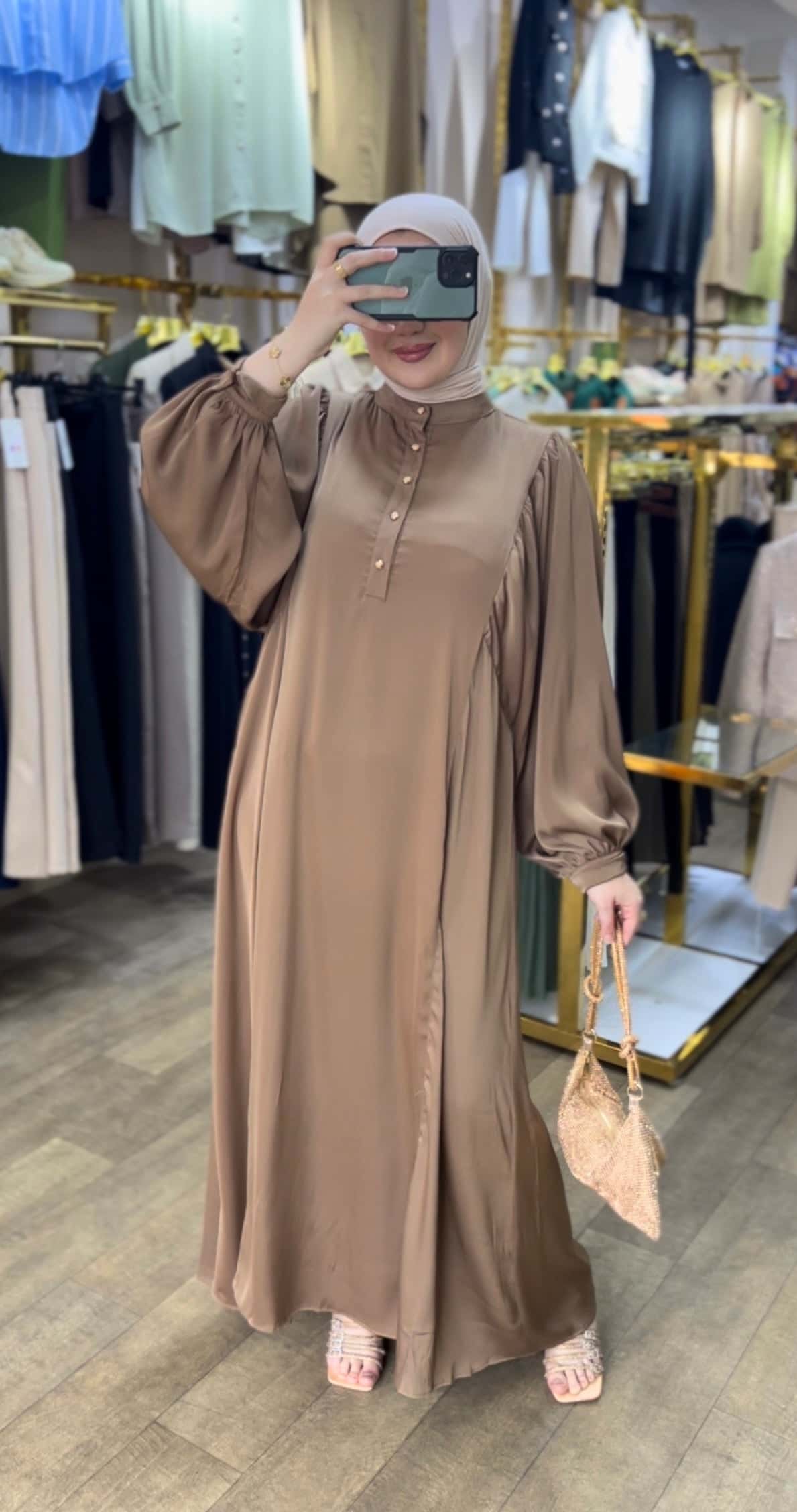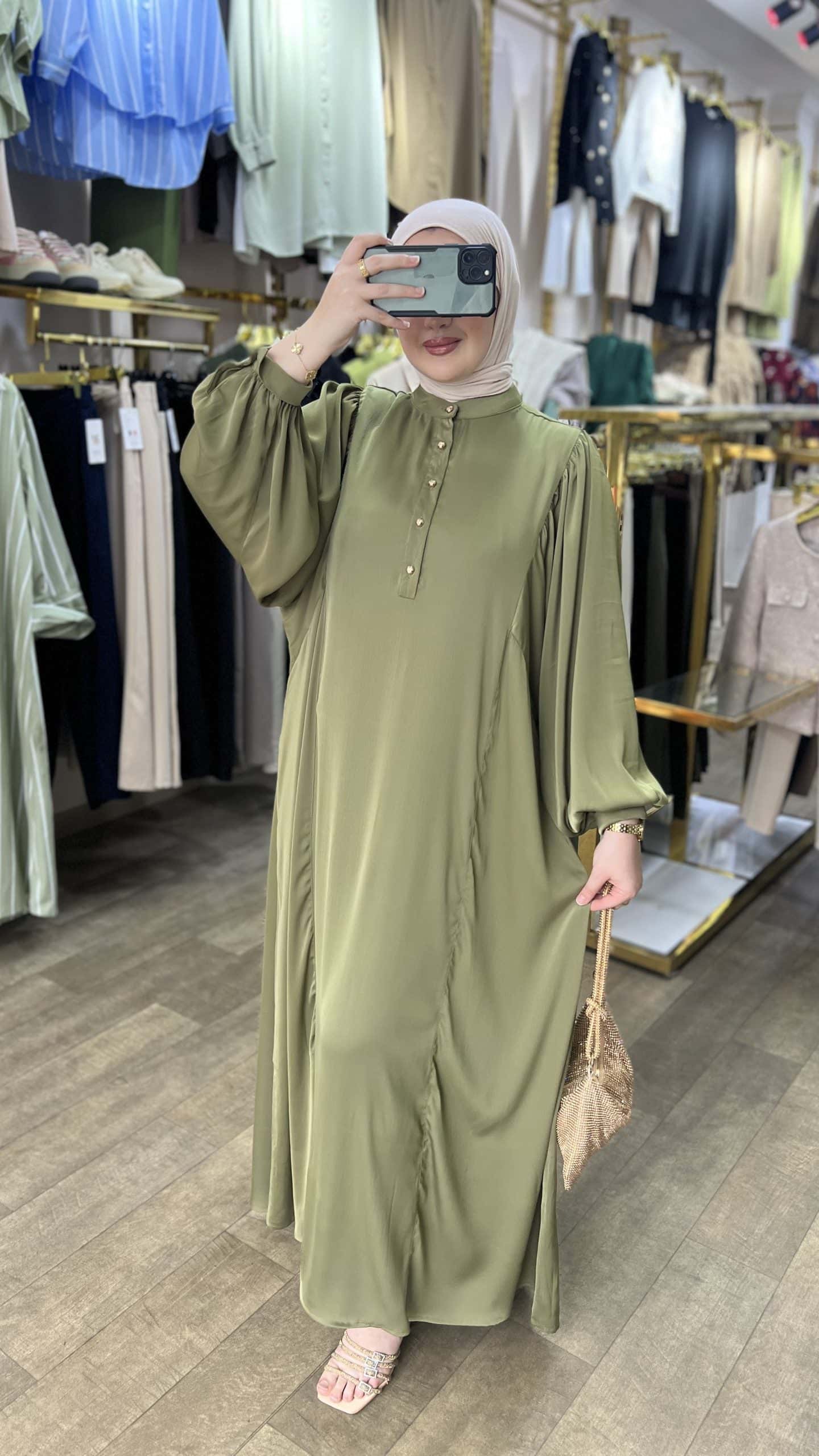 Son col officier élégant et ses manches chauve-souris volumineuses, cette robe vous offre une allure majestueuse et sophistiquée.